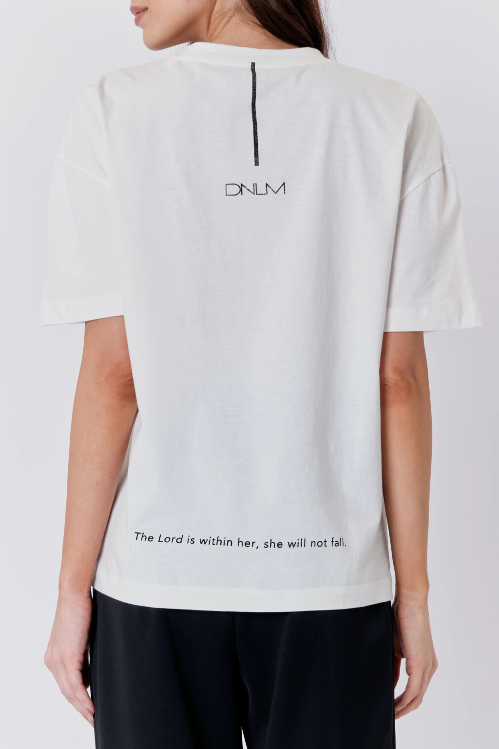 Esta T-shirt oversized é mais do que uma peça de roupa; é uma declaração de fé! Inspirada na passagem de Salmos 46:5, ela traz a mensagem poderosa: "GOD IS WITHIN HER, SHE WILL NOT FALL".